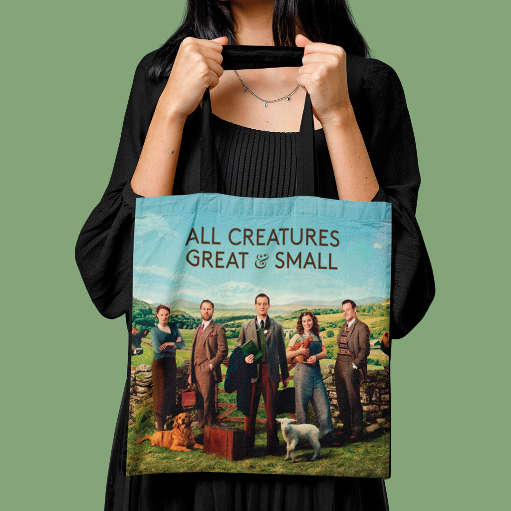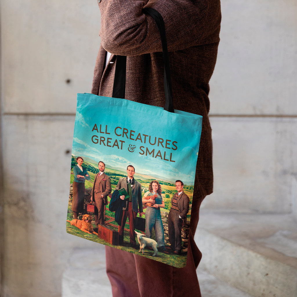 Show off your love for All Creatures Great and Small with this stylish Cast Group Edge-to-Edge Tote Bag. Featuring a vibrant, full-print design of the beloved cast, this tote bag is perfect for fans of the series who want to carry a piece of Darrowby with them wherever they go. Ideal for everyday use, whether shopping, commuting, or heading to the library, this tote is as practical as it is charming.