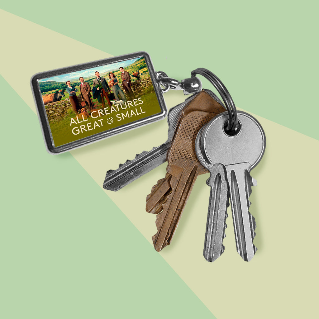 Carry the charm of the Yorkshire Dales with you wherever you go with this All Creatures Great and Small Cast Group Keyring. Featuring a vibrant print of the beloved cast, this high-quality metal keyring is the perfect accessory for fans of the iconic series. Whether you're adding it to your keys, bag, or backpack, this keyring is a stylish way to show off your love for All Creatures Great and Small.