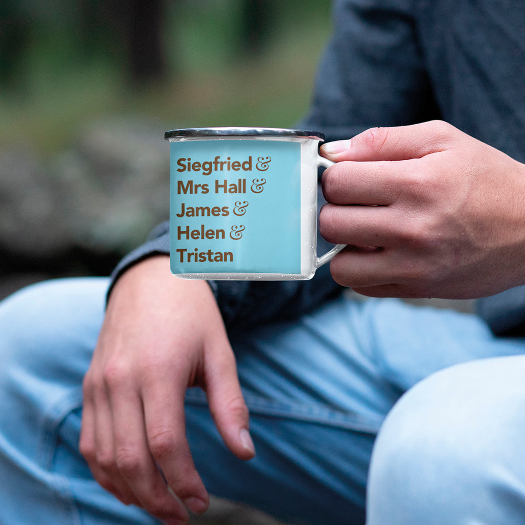 All Creatures Great and Small Character Names on Blue Enamel Mug