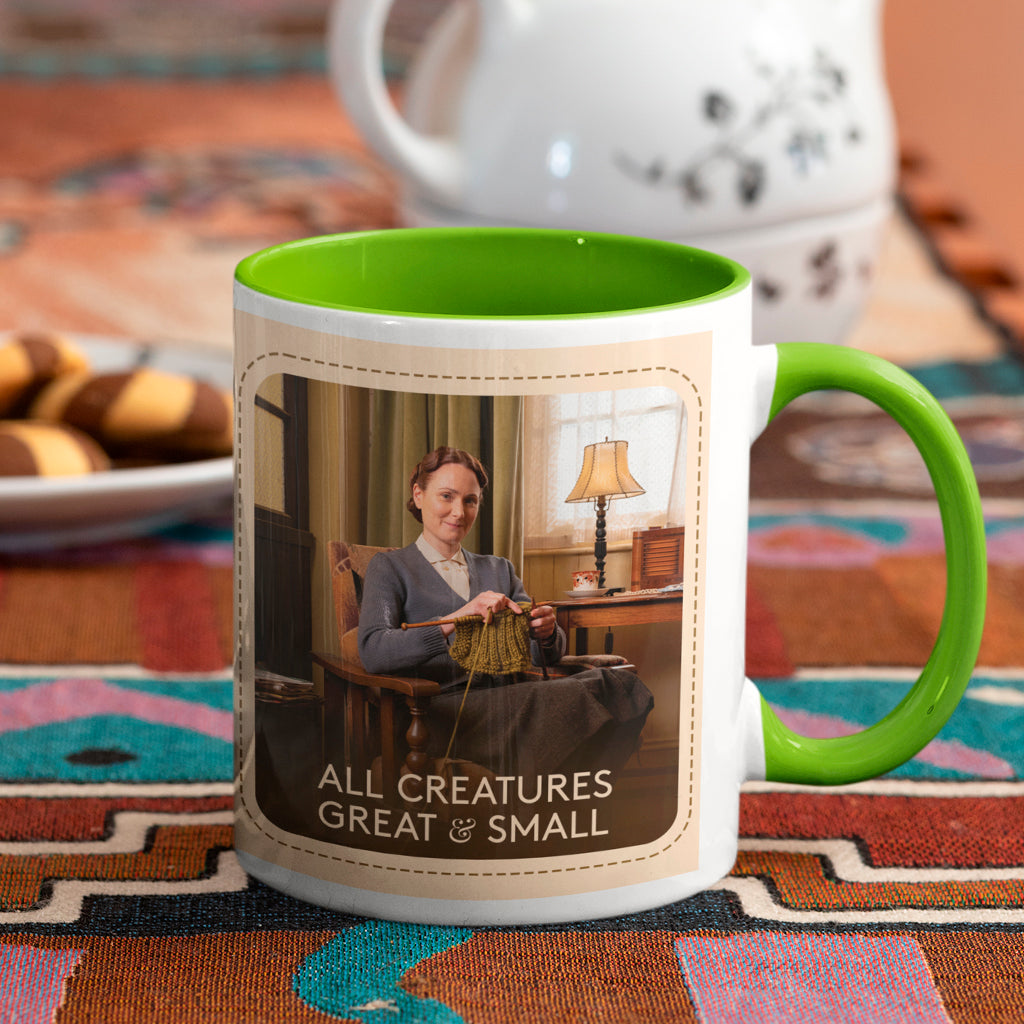With its elegant green interior and the iconic image of Mrs Hall, this Mrs Hall Character Mug is the perfect addition to your collection or a thoughtful gift for fans of "All Creatures Great and Small." Whether for yourself or a loved one, this mug brings a touch of warmth and care to every cup.