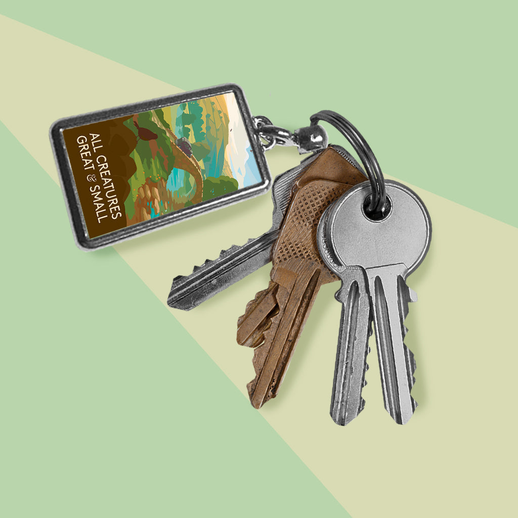 Take a piece of the tranquil Yorkshire Dales with you wherever you go with this All Creatures Great and Small River Crossing to Darrowby Keyring. Featuring a beautifully detailed image of the iconic river crossing, this high-quality metal keyring is a perfect accessory for fans of the beloved series. Attach it to your keys, bag, or backpack and carry the serene charm of Darrowby with you every day.