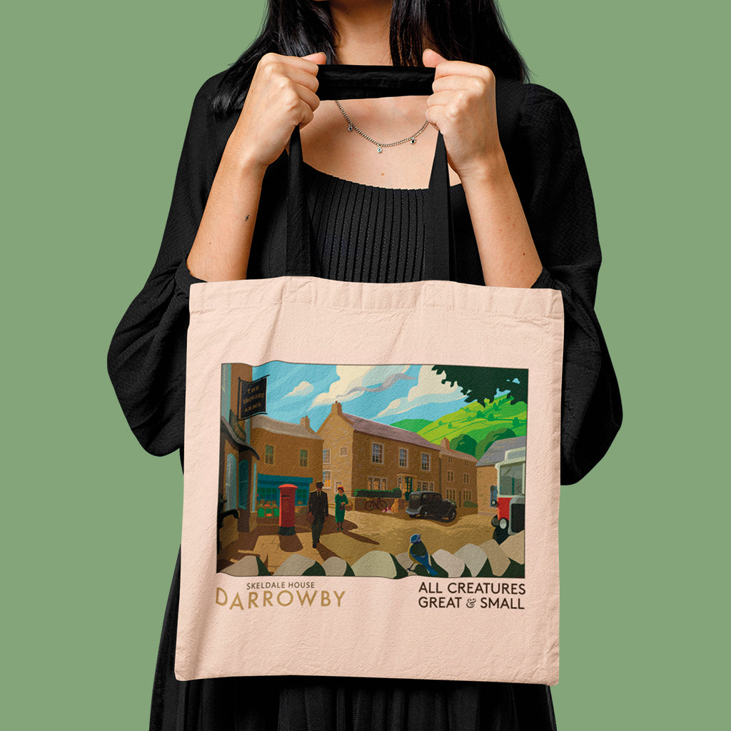 Whether you're a devoted fan of the show or simply appreciate the beauty of rural life, this Skeldale House and Countryside Tote Bag is the perfect accessory for any occasion. Take a piece of Darrowby with you on all your adventures!