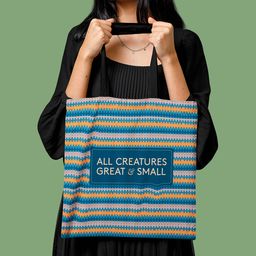 All Creatures Great and Small Striped Blue Edge-to-Edge Tote Bag