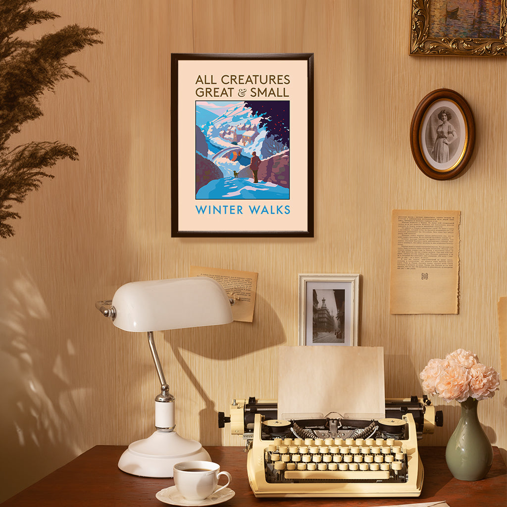 Embrace the beauty of nature and bring a touch of winter wonderland into your home with the All Creatures Great and Small Winter Walks Art Print. Perfect as a gift or a treat for yourself, this print promises to be a cherished addition that inspires peace and joy, all while being kind to the planet.