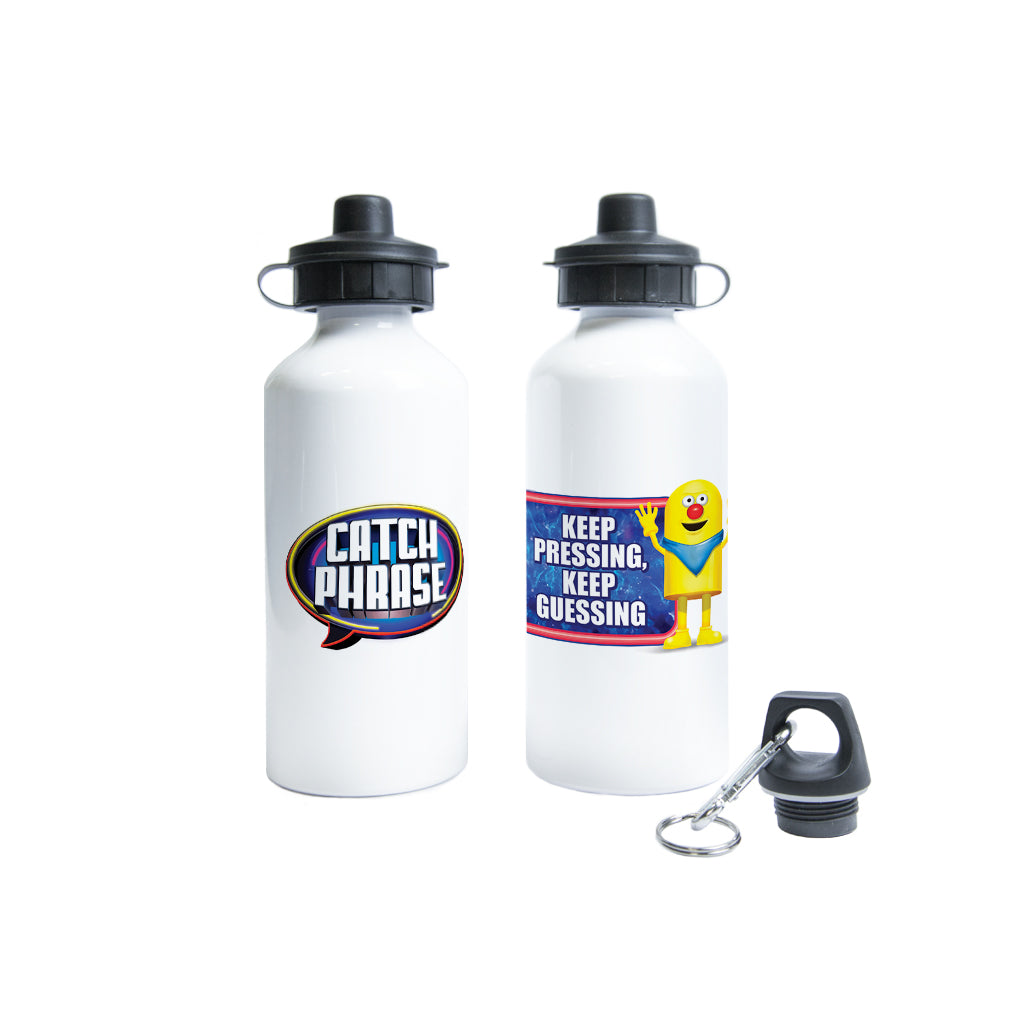 Stay hydrated in style with this fun and functional metallic water bottle inspired by the iconic TV game show, Catchphrase. Perfect for fans of classic telly and lovers of quirky, nostalgic gifts, this bottle is ideal for school, work, the gym or on the go. Whether you're solving puzzles or just need a refresh, it's a brilliant conversation starter and a practical accessory in one.