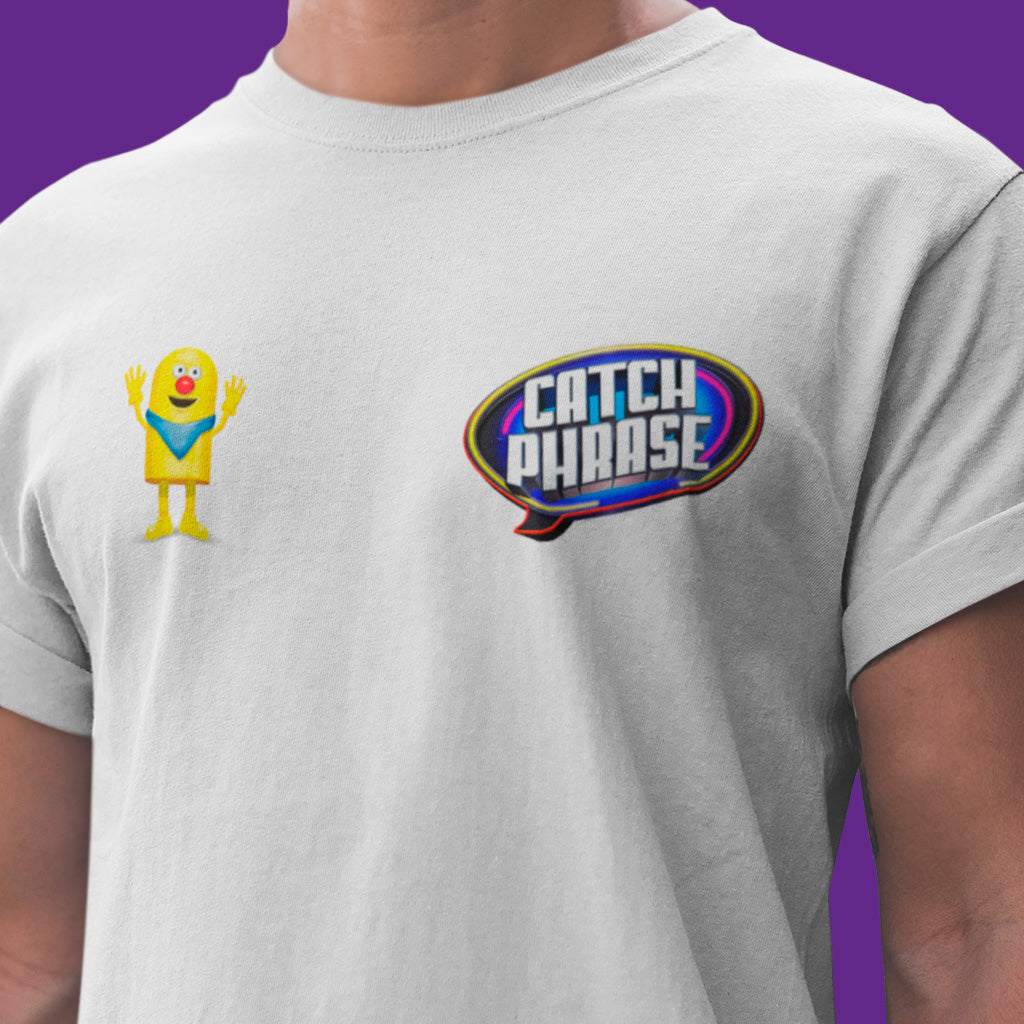 Bring a touch of classic British television nostalgia to your wardrobe with this officially inspired Catchphrase design. Perfect for fans of the iconic game show, this T-shirt captures the humour, charm, and timeless appeal of the beloved programme. Whether you're treating yourself or shopping for a fellow fan, this is a fun and memorable way to celebrate one of the UK’s most enduring quiz shows.