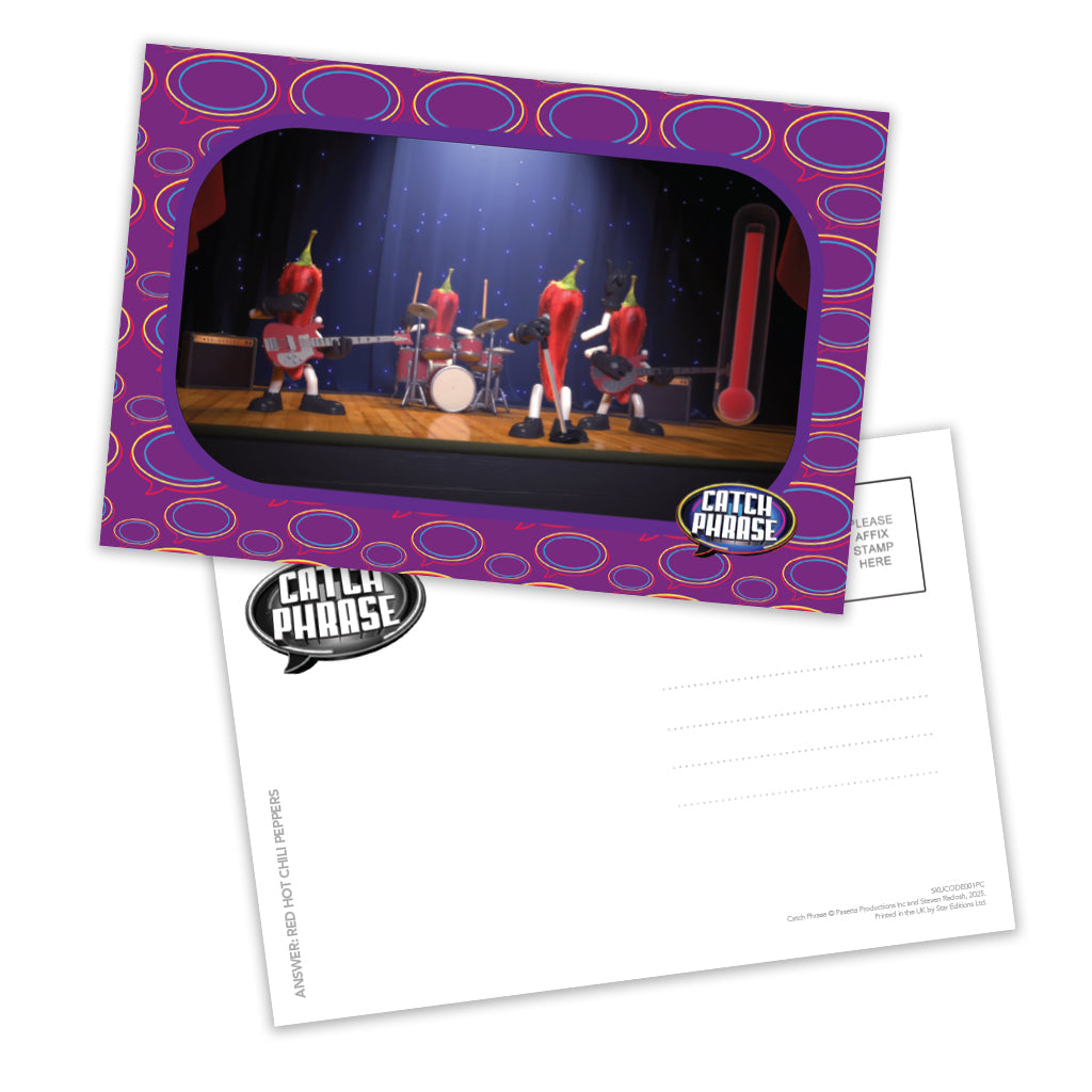 This officially licensed Catchphrase postcard set brings a nostalgic touch to your collection. Featuring artwork inspired by the iconic British game show, each postcard captures the charm and humour that made Catchphrase a household favourite. Whether you're a longtime fan or looking for a unique gift, these postcards are perfect for sending a smile, displaying as mini art prints, or keeping as a quirky memento.
