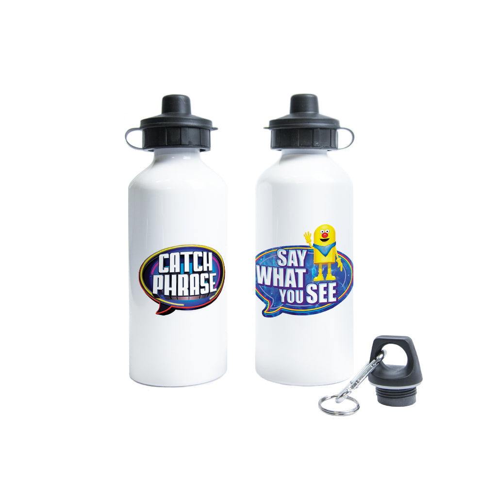 Stay hydrated in style with this fun and functional metallic water bottle inspired by the iconic TV game show, Catchphrase. Perfect for fans of classic telly and lovers of quirky, nostalgic gifts, this bottle is ideal for school, work, the gym or on the go. Whether you're solving puzzles or just need a refresh, it's a brilliant conversation starter and a practical accessory in one.