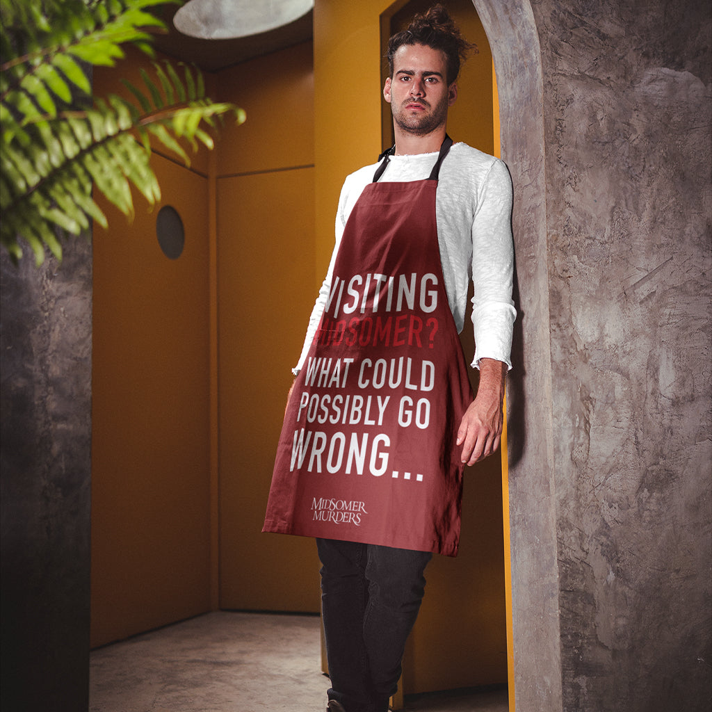 Bring a touch of crime-solving charm to your kitchen with this high-quality apron inspired by the beloved British TV series, Midsomer Murders. Whether you're baking, barbecuing, or cooking up a cosy dinner, this apron is perfect for fans who appreciate the quirks and mysteries of Midsomer County. Designed for both adults and children, it's ideal for family cooking sessions or themed events.